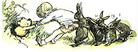 -Aha!-mondta Micimackó. (pritty, pretty, prütty.) Ha hézagos műveltségem nem hagy cserbe, akkor ez a bucka Nyuszit jelenti, a Nyuszi pedig Jó Társaságot és valami harapnivalót jelent. Tehát: